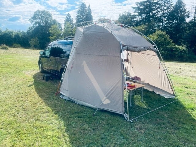 Campercompact heeft ook twee bustenten beschikbaar voor verhuur. 1 tent is een zijdeurtent en de andere tent (Voude drive van) is meer voor de achterklep maar kan ook eventueel aan de schuifdeurkant geplaatst worden. De tenten zijn lekker ruim eventueel met tentcarpet.